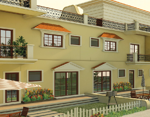 Saldanha Bougain-villa –An architecture of comfort and grace, Each villa honours the intimacy of the neighbourhood of green fields and abundance of palm trees. Inviting the outdoors with generous balconies and expansive terraces.